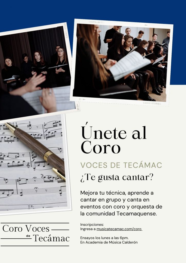 Estamos formando VOCES DE TECÁMAC, un coro que interpretará obras como el Gloria de Vivaldi, la Lacrimosa de Mozart, Barcarola de Offenbach y muchas más…